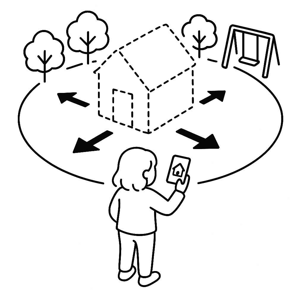 • iPhoneProやiPadProでは、室内で利用すると壁などの物がうつり込んで、うまくARを表示できません。屋外などの周辺に物のない、十分に広いスペースでご使用下さい。